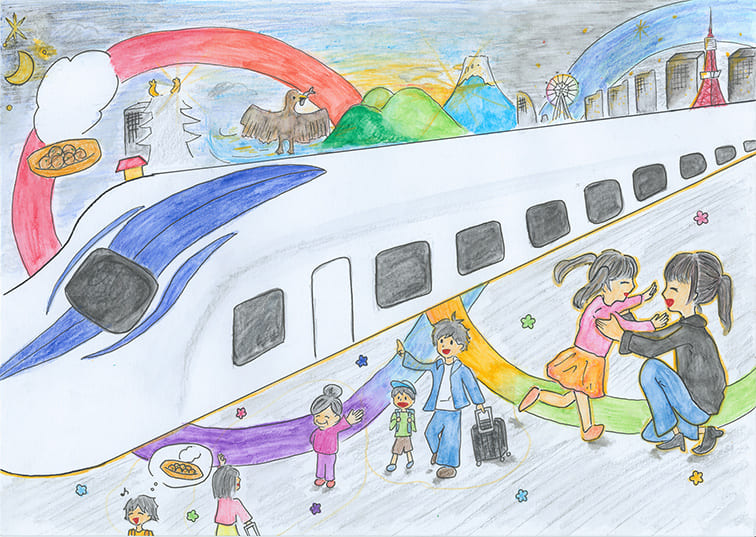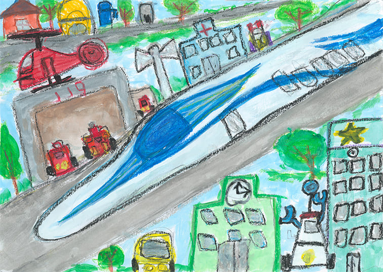 ●当コンクール専用特設ホームページに掲載されているリニア中央新幹線の紹介動画を見て、リニア中央新幹線が完成したあとに自分たちのまちがどうなっていくか想像してみてください。