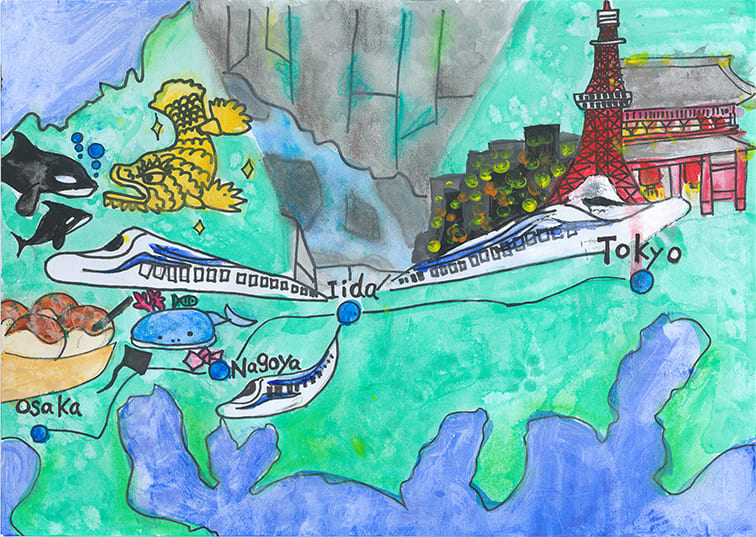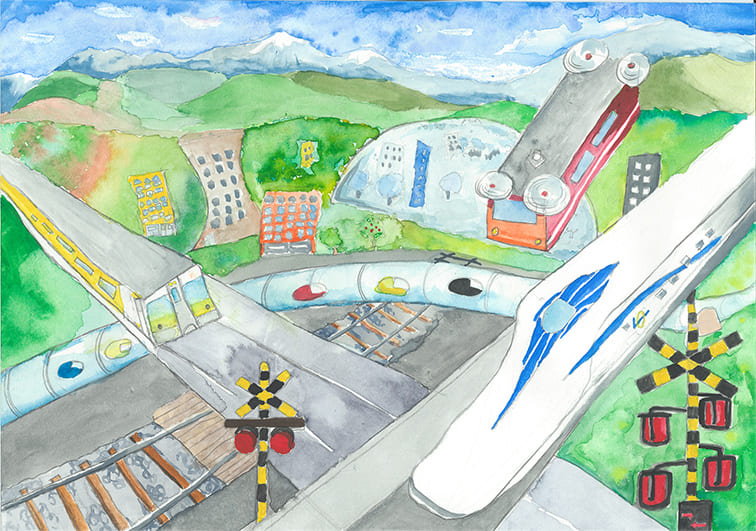 ●当コンクール専用特設ホームページに掲載されているリニア中央新幹線の紹介動画を見て、リニア中央新幹線が完成したあとに自分たちのまちがどうなっていくか想像してみてください。